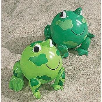 Inflatable Frog Beach Balls. Assorted shades of green. 10" Overall size measures 14". 12 Inflatable Frog Beach Balls